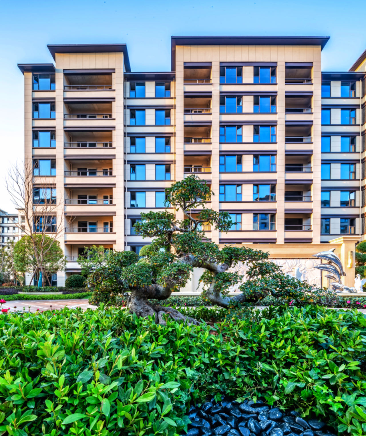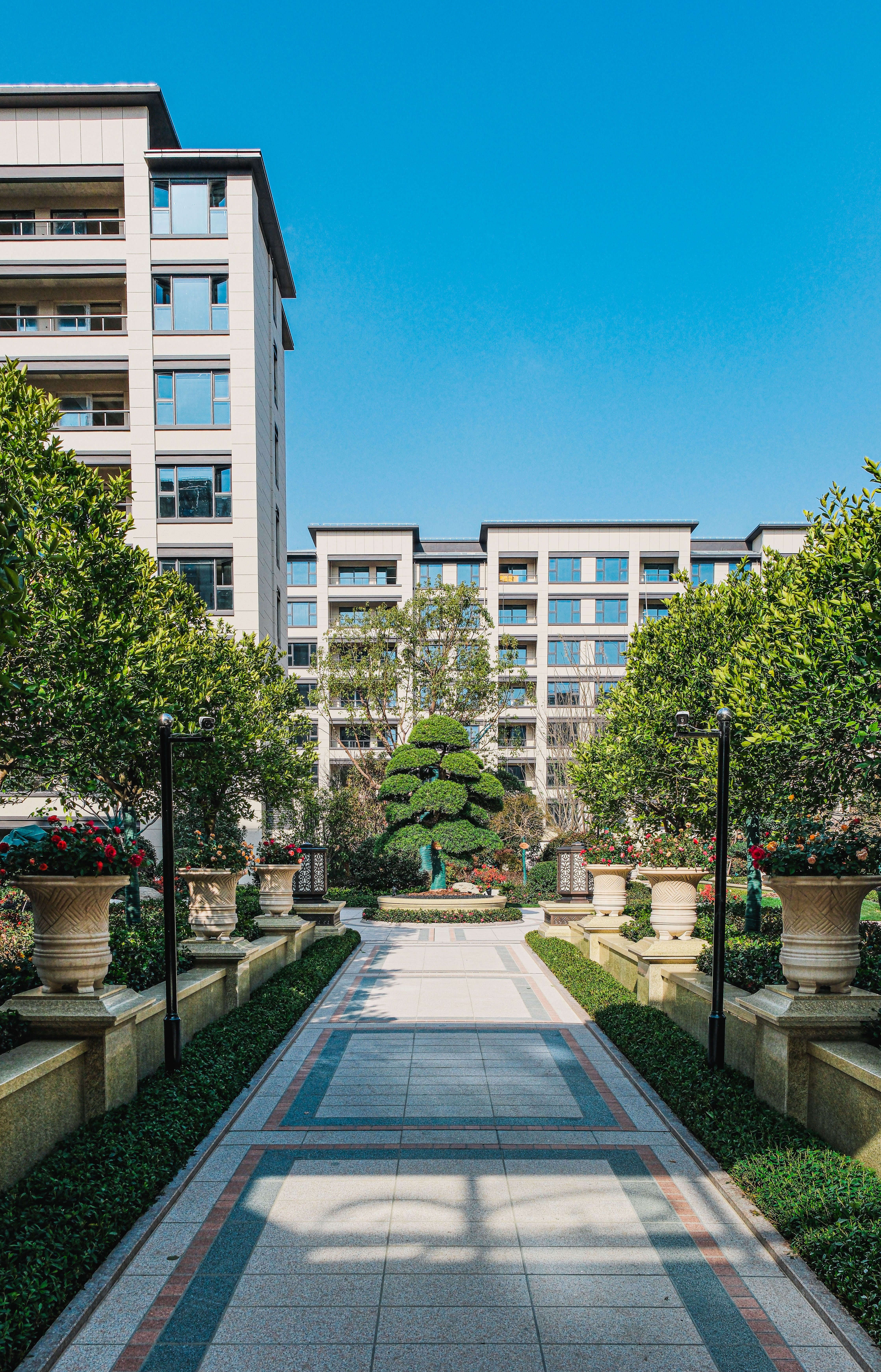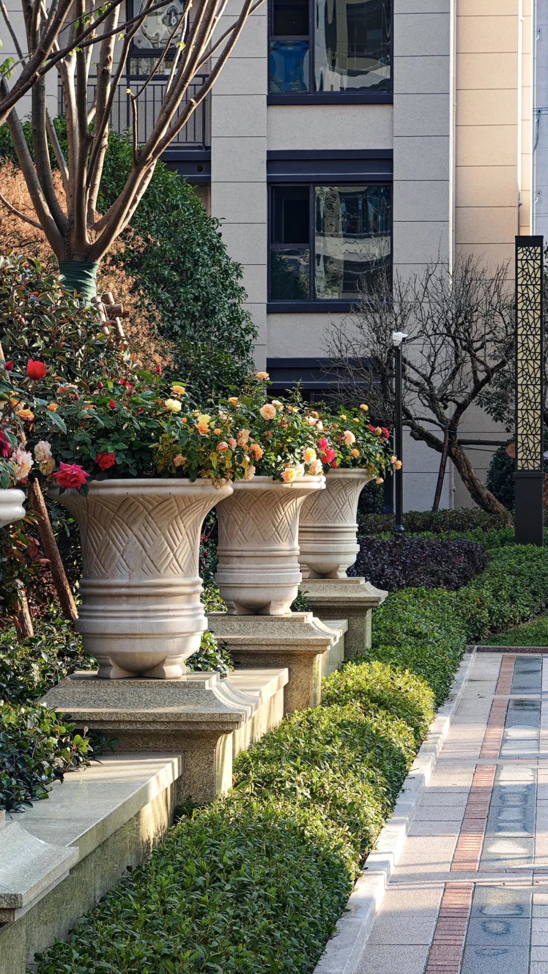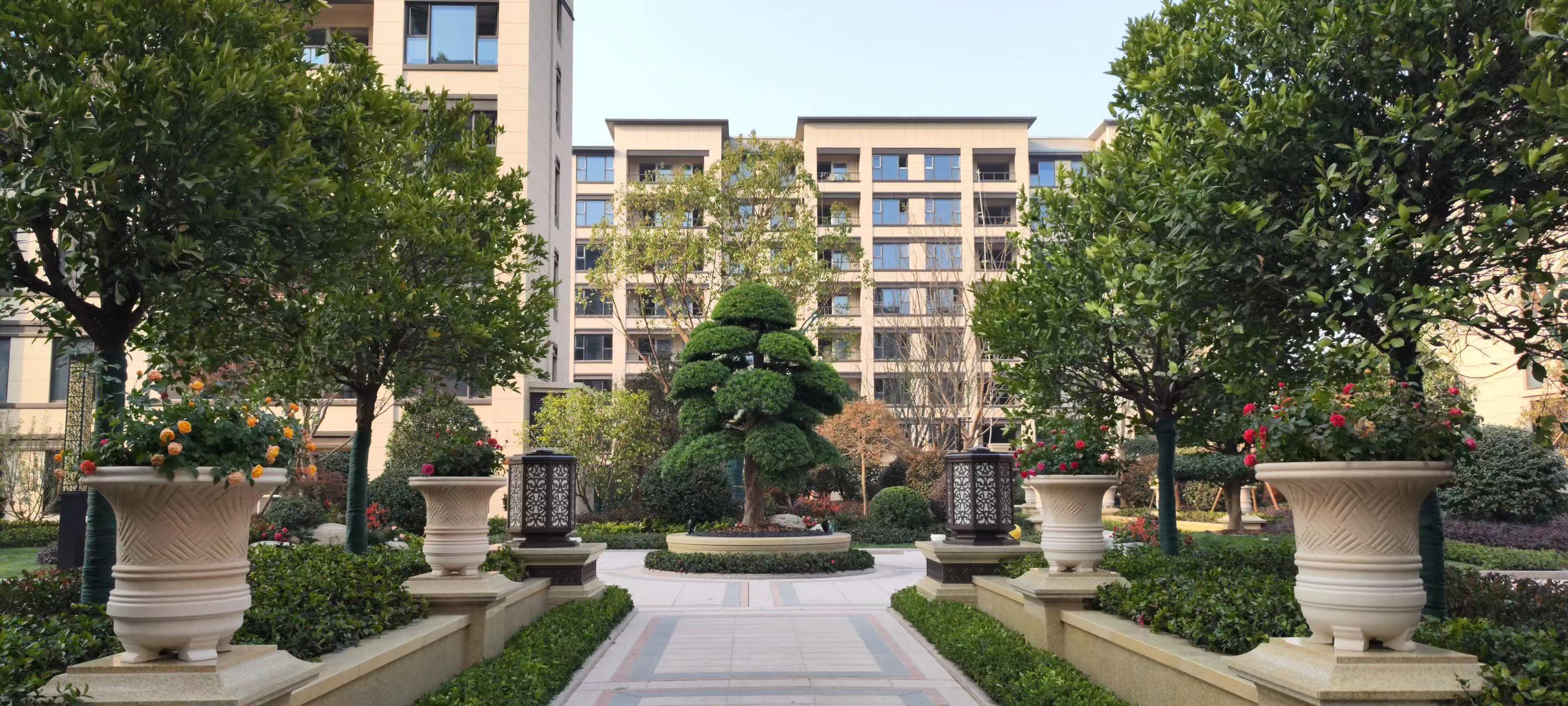 走進(jìn)社區(qū)內(nèi)部,可見(jiàn)一棵進(jìn)口日本的造型羅漢松,如今正綻放著新的生機(jī),其兩側(cè)種植了高桿香櫞,展現(xiàn)一副氣勢(shì)磅礴的世家名邸畫卷。