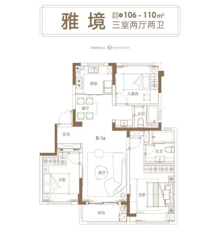 此外,項(xiàng)目還有建面約106-110㎡三房可供選擇,戶型圖如下↓