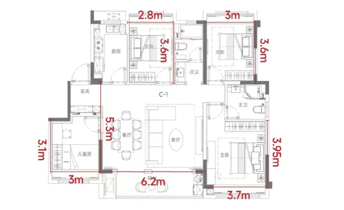 佳運(yùn)名邸的得房率約81%~83%,相比市面75%得房率,佳運(yùn)名邸的得房率足足高出約8%,即建面約133㎡相差約10㎡,以4萬/㎡均價(jià)計(jì)算,等于房價(jià)變相少了30多萬。